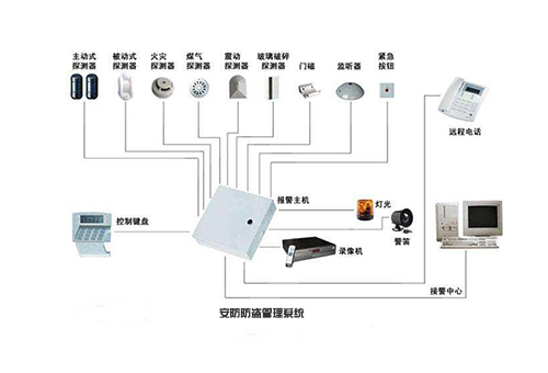防盜報(bào)警系統(tǒng)由報(bào)警主機(jī)、紅外雙鑒探測(cè)器、聲光報(bào)警器等設(shè)備組成。